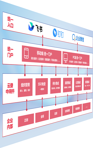 对协作平台提供支持服务,,,支持企业应用与协作平台对接,,,,包含组织同步、、消息集成、、、、待办集成等。。支持目前主流的协作平台:钉钉、、、企微和飞书。。